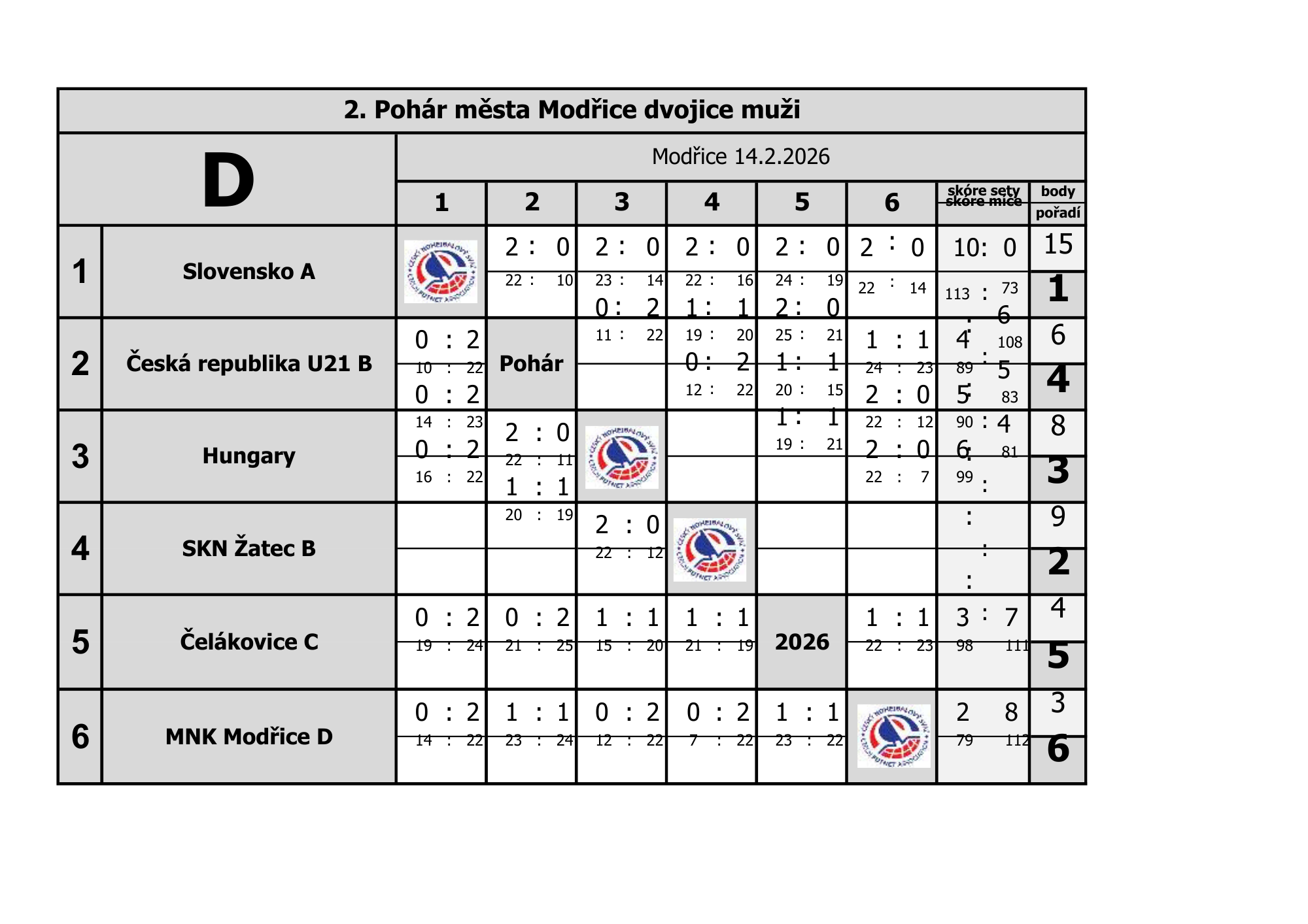 Slovenské nohejbalové reprezentácie sa predstavili na medzinárodnom turnaji Pohár mesta Modřice, kde si v konkurencii tímov z viacerých krajín overili svoju výkonnosť v dvojiciach hraných podľa medzinárodných pravidiel.
