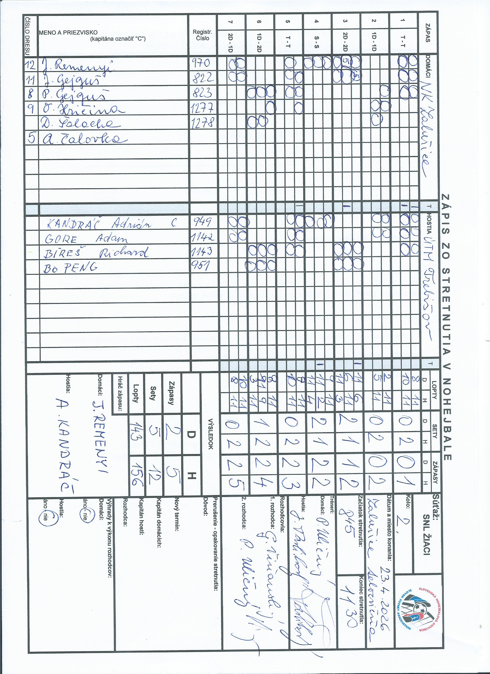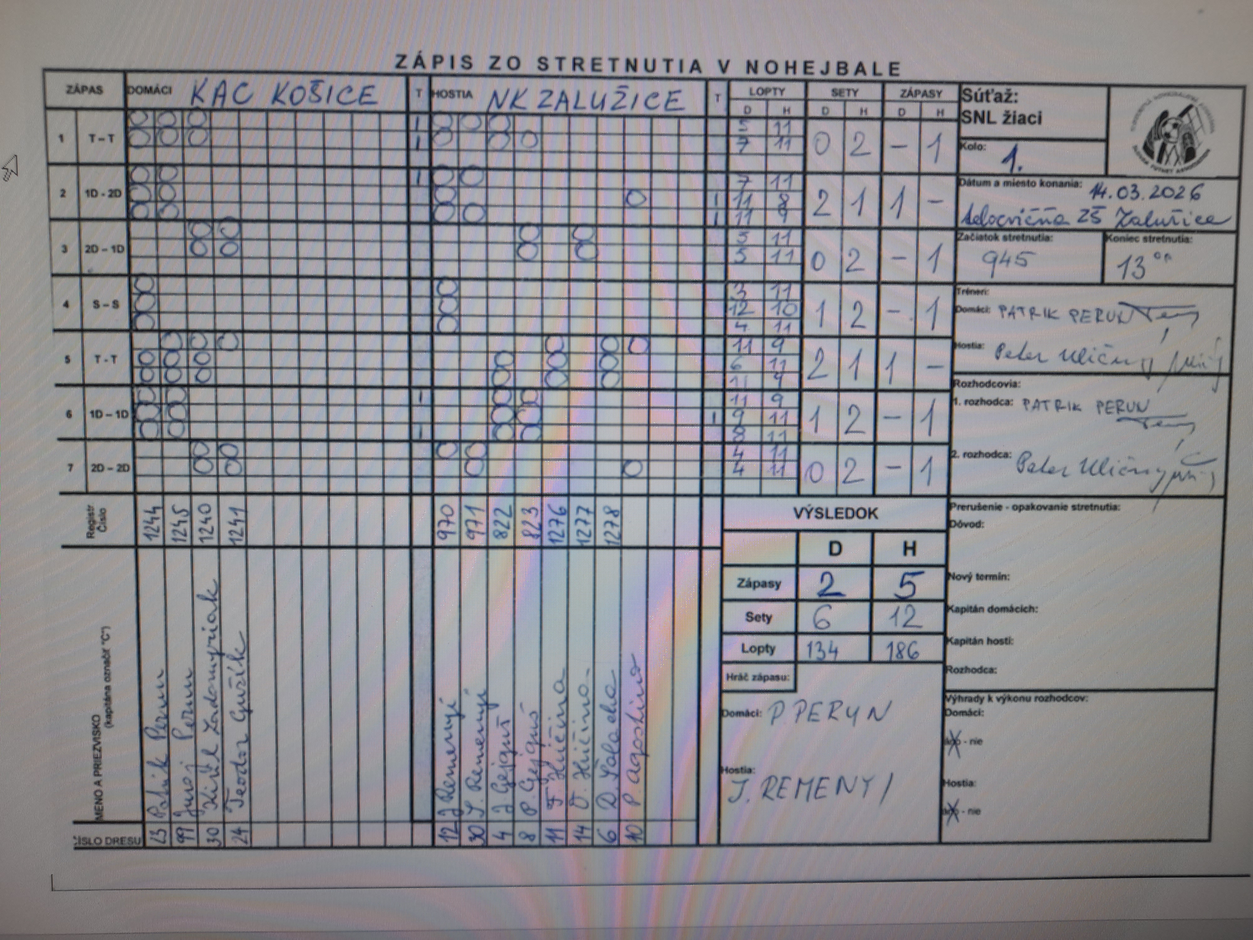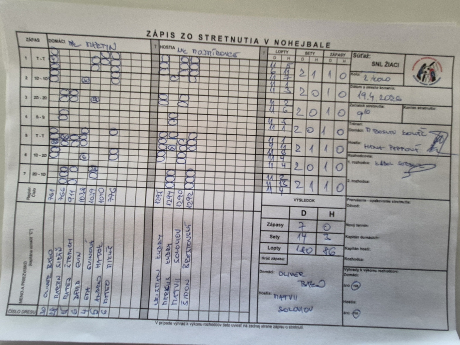 | Dátum | Kolo | Domáci | Hostia | Zápasy | Sety | Lopty |